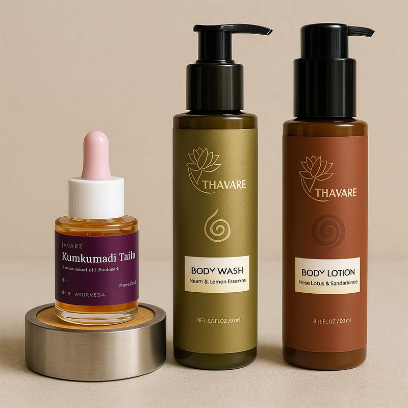 Born at the meeting point of two sciences — modern medicine andAyurveda.Created by an allopathic doctor and inspired by Ayurvedic formulations shared by a traditional physician,Thāvare blends clinical precision with ancient intelligence. Every product is clean, functional, and rooted in care — where science meets soul, and healing becomes a daily practice.